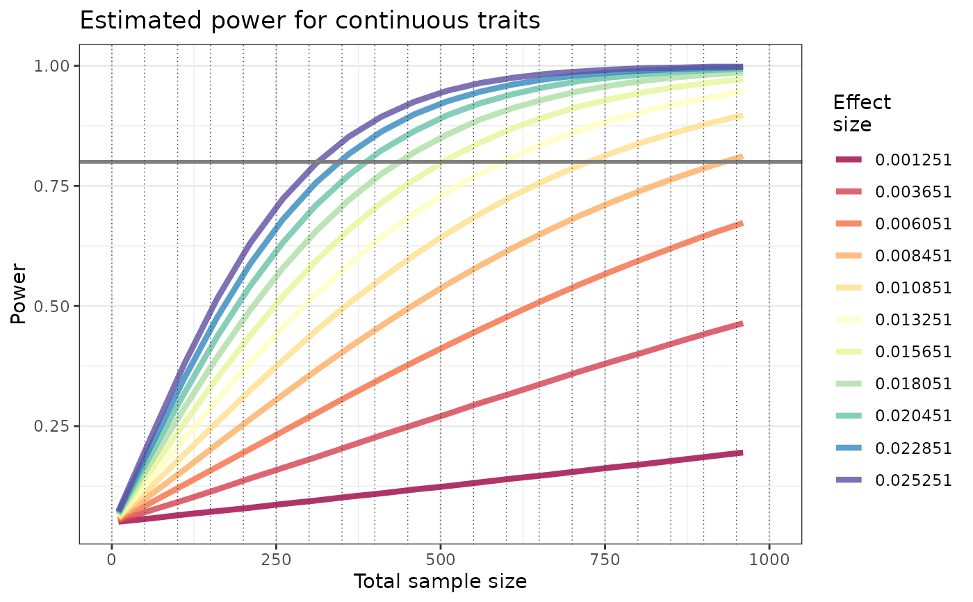continuous trait power analysis plot