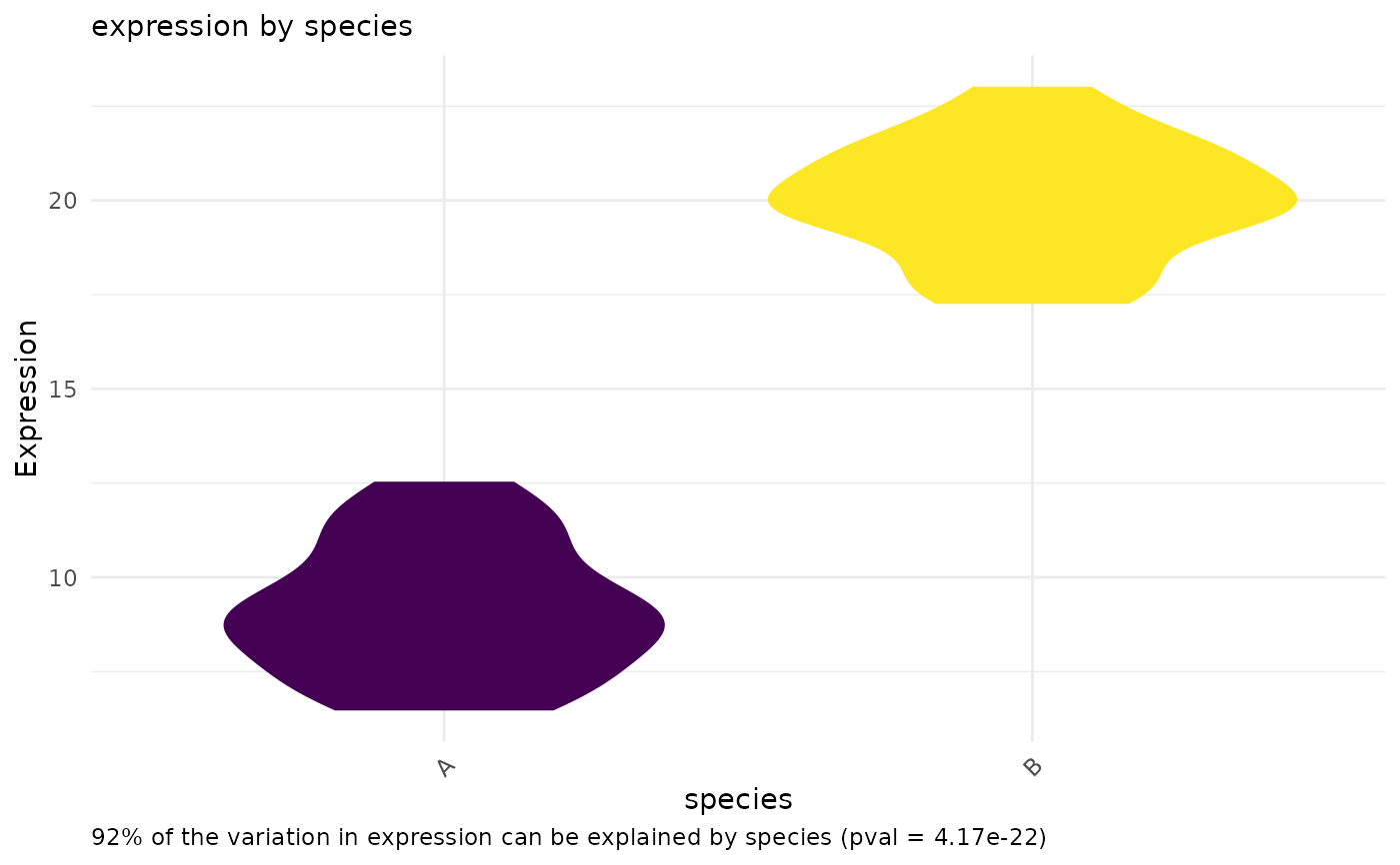 variable_by_factor(dep = x , indep = y, dep_name = "expression", indep_name = "species" )
